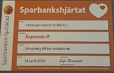 Det är med glädje vi vill meddela att vi fått 5000 kr för att köpa in träningsmaterial. Stort tack till Sofie Barsenholt @sb7907 som valt att sponsra Äspereds IF genom sin arbetsplats Sparbanken Sjuhärad. Så tacksamma för detta bidrag.