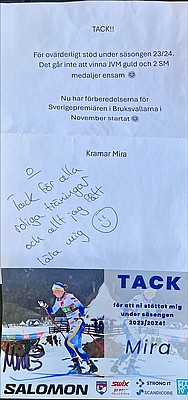 Vill även passa på att berätta att vi fått ett jättefint tackkort för säsongen av Mira Perlerot-Göransson. En gång Äsperedare, alltid nära hjärtat därefter. Tack för fina ord Mira. Vi ska sätta upp detta på ett väl valt ställe i klubbstugan! Du är en förebild för många unga skidåkare!