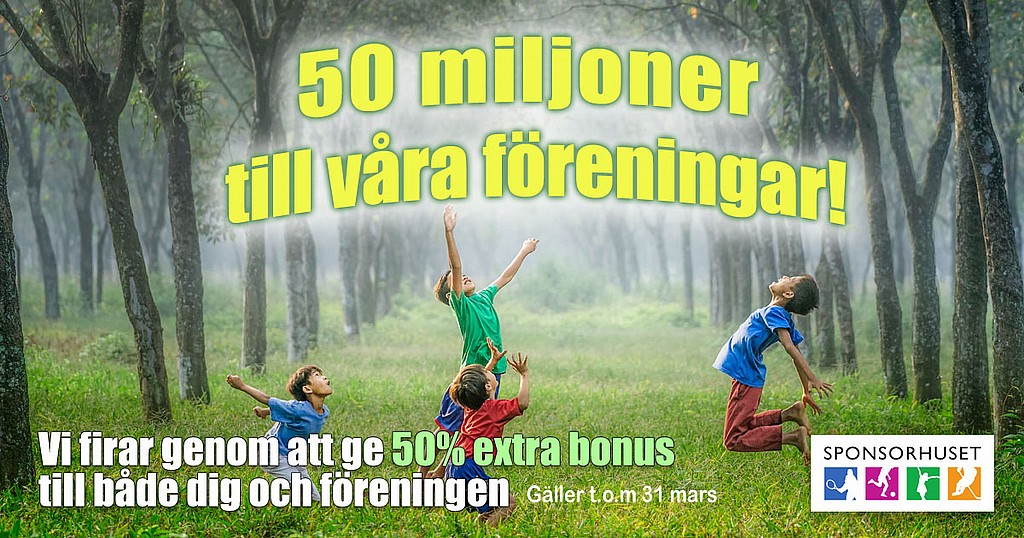 Nu firar Sponsorhuset att dem delat ut över 50 miljoner kronor till föreningar runt om i Sverige genom att ge 50% högre ersättning på alla köp som görs mars ut. Som vanligt får både du själv och Äspereds IF pengar tillbaka och inget blir dyrare för dig som handlar.