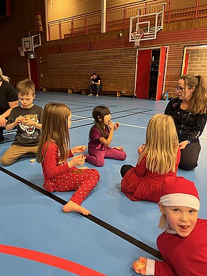 Inte tagit mycket bilder under terminen. Igår togs lite bilder på alla lucior, tomtenissar och juliga barn. Vi avslutade familjegympan med att klubben bjöd clementin och pepparkakor.