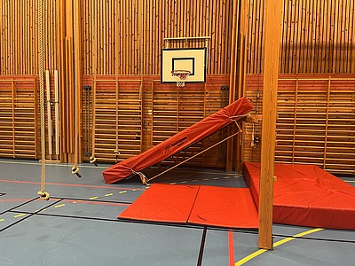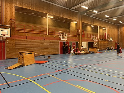 Rörelser, hinderbana och lek tillsammans under en timma på torsdagar i äsperedshallen under höst och vår.